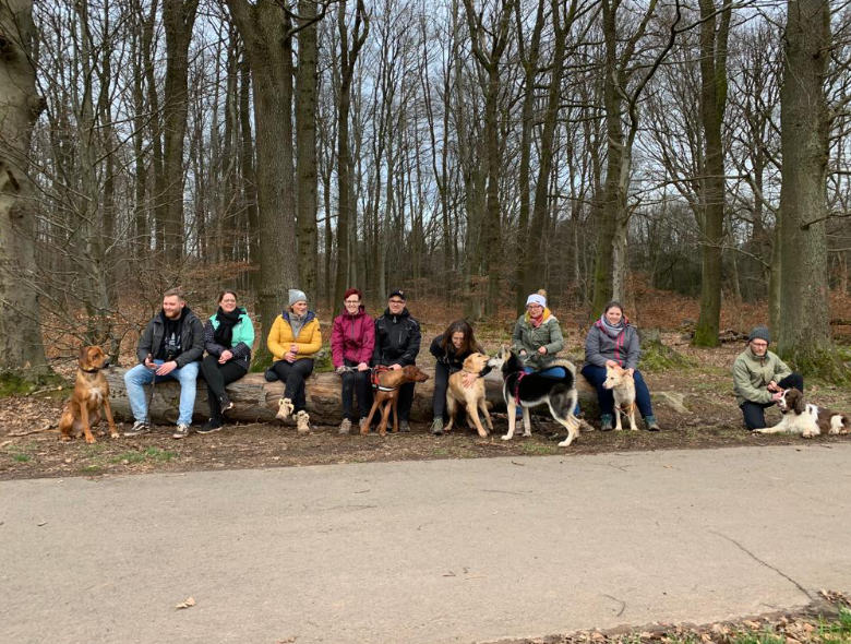 Das Begegnungstraining bietet den Hunden die Möglichkeit zu Sozialkontakten. Du lernst die Körpersprache deines Hundes in einer Gruppe mit mehreren fremden Hunden zu deuten. Hierbei unterstütze ich dich mit Tipps und Tricks zur Leinenführigkeit.